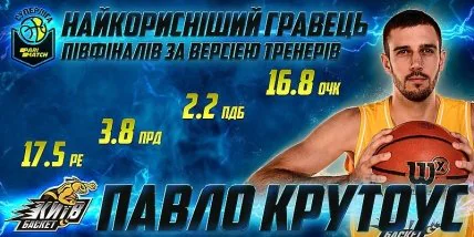 Легкий форвард "Киев-Баскета" Павел Крутоус признан самым ценным игроком полуфинала баскетбольной Суперлиги по версии тренеров. Об этом сообщает сайт ФБУ.