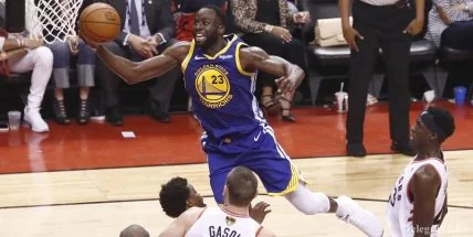 Мощный форвард «Голден Стэйт Уорриорз» Дрэймонд Грин поговорил на повышенных тонах с одним из самых известных болельщиков «Торонто Рэпторс» знаменитым рэпером Дрейком после окончания первого матча финальной серии плей-офф НБА. Уходя с площадки после финальной сирены, Грин остановился около стоявшего за лицевой Дрейка и обменялся с ним трэш-током.