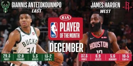 Игроком Восточной конференции стал лидер «Милуоки» Яннис Адетокунбо, который помог команде одержать 13 побед в 15 матчах, набирая в среднем 29,3 очка, 12,0 подбора и 5,3 передачи.