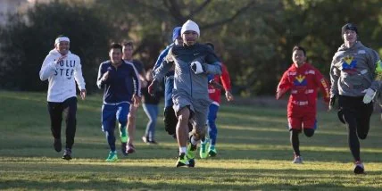 36-летний филиппинец Мэнни Пакьяо продолжает подготовку к намеченному на 2 мая поединку с 38-летним американцем Флойдом Мейвезером-младшим. Только что на своей странице в одной из социальных сетей Пакьяо разместил фотографию с подписью: "Поймайте меня, если сможете. Команда Пакьяо составляет мне компанию во время утренней пробежки".
