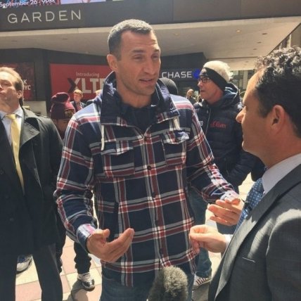 Чемпион мира в супертяжелом весе по версиям IBF, WBA, WBО, IBO и журнала "The Ring Magazine" Владимир Кличко, которому в эту субботу 25 апреля предстоит защищать свои титулы в поединке против Брайанта Дженнингса, гуляет вместе с членами своей команды в окрестностях арены Madison Square Garden, где и состоится бой.