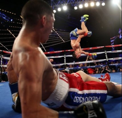 Трансляция боя Ломаченко - Мартинес.В пятом раунде боя Василий Ломаченко нокаутировал пуэрториканца Романа "Рокки" Мартинеса. Ломаченко полностью доминировал в ринге в первых четырех раундах, а в пятом отправил Мартинеса в тяжелый нокаут комбинацией левый апперкот - правый хук.