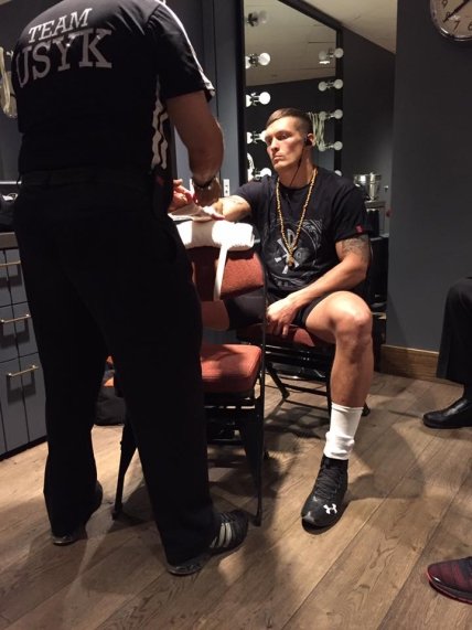 4:55 Александр Усик проходит процедуру тейпирования рук
