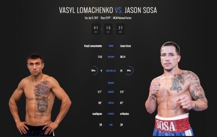 Василий Ломаченко (7-1, 5 КО) — Джейсон Соса (20-1-4, 15 КО) (главный бой)
