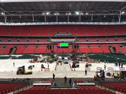 Как пишет DailyMail, чуть меньше чем через неделю после второго из двух сенсационных полуфиналов Кубка Англии, «Уэмбли» трансформируется из футбольного стадиона в большую боксерскую арену. Для этого надо сложить один «ярус», установить кресла и построить ринг.