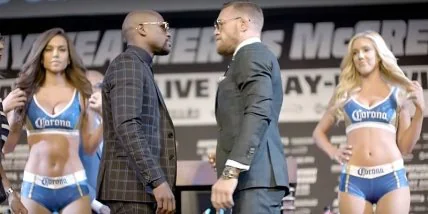 Флойд Мейвезер-младший и Конор Макгрегор пообщались накануне "боя тысячелетия", который состоится в ночь с 26 на 27 августа.