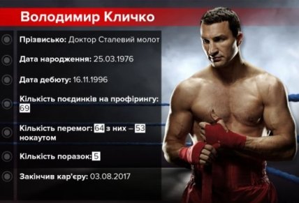 Кличко на профессиональном ринге провел 69 поединков, из которых он проиграл лишь 5 – Владимир стал четвертым в истории супертяжелого дивизиона по количеству побед. Из этих 69 поединков – 53 победы нокаутом. Сегодня Владимир воспитывает с актрисой Хайден Пеннетьери дочь Кайю Евдокию. Украинец стал живой легендой и вместе с братом Виталием вдохновляет своей блестящей карьерой юных боксеров".