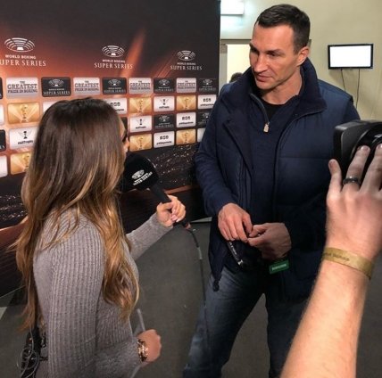 22:30 Владимир Кличко поддерживает Александра Усика в полуфинале WBSS.