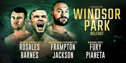 В Белфасте, Северная Ирландия проведет свой второй бой после возвращения на ринг экс-чемпион мира в супертяжелом весе британец Тайсон Фьюри, соперником которого станет итальянский боксер Франческо Пьянета. Этот бой может стать последним "разминочным" поединком для Тайсона Фьюри перед боем с чемпионом мира по версии WBC американцем Деонтеем Уайлдером.