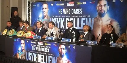 В Манчестере 24 сентября прошла пресс-конференция, посвященная грядущему бою между абсолютным чемпионом мира в тяжелом весе Александром Усиком и претендентом на его титулы Тони Беллью.