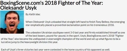 Усик - лучший боксер 2018 года по версии BoxingScene