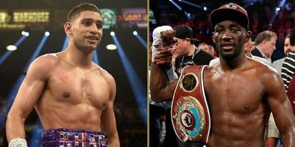 Теренс Кроуфорд за профессиональную карьеру в боксе не проигрывал ни разу, победив во всех 34 боях. Амир Хан имеет 33 победы при четырёх поражениях.
