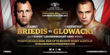 Бой Майриса Бриедиса с Кшиштофом Гловацки состоится 15 июня в столице Латвии Риге. Дата и место проведения другого полуфинала WBSS в первом тяжелом весе, в котором встретятся кубинец Юниер Дортикос (23-1, 21 КО) и американец Эндрю Табити (17-0, 13 КО), будут объявлены позже.
