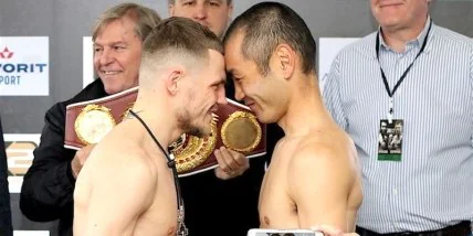 2-й раунд: У Беринчика рассечение над правым глазом. Японец поджимает, но Денис отвечает более точными и жесткими ударами.