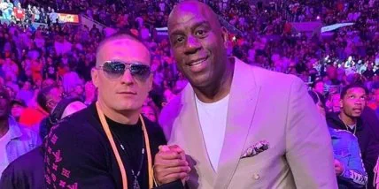 На одном со снимков Усик стоит с легендой НБА и Лос-Анджелес Лейкерс Меджик Джонсоном (5-кратный чемпион НБА), рост которого 206 см.