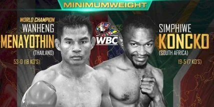 Чемпион WBC в минимальном весе Ваненг Менайотин 25 октября в Таиланде победил обязательного претендента Симпиве Конко и довел свой послужной список на профессиональном до 54-х побед при отсутствии поражений. Чемпион отправил соперника в нокдаун в седьмом раунде и победил со счетом 118-109, 117-110 и 116-111.