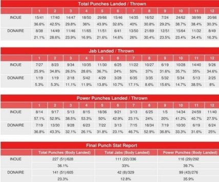 Нонито Донэйр - Наоя Иноуэ: статистика ударов в финале WBSS