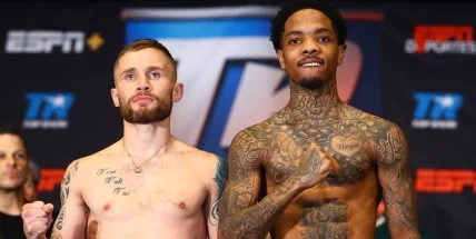 Экс-чемпион мира в двух весовых категориях Карл Фрэмптон показал на весах ровно 128 фунтов (58 кг) перед своим дебютным поединком в первом легком весе против Тайлера Маккрири (127,5 фунта / 57,5 кг). Это будет первый бой британца Фрэмптона по контракту с Top Rank и в случае победы он может встретиться с чемпионом WBO в первом легком весе Джеймелом Херрингом в следующем году.