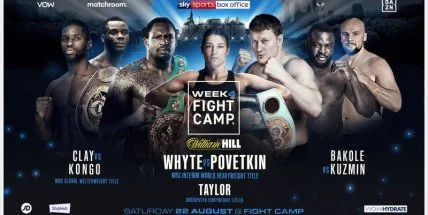 В главном бою временный чемпион WBC в супертяжелом весе Диллиан Уайт встретится с российским боксером Александром Поветкиным. Еще один российский супертяжеловес Сергей Кузьмин проведет бой против Мартина Баколе, а абсолютная чемпионка мира в легком весе Кэти Тейлор проведет защиту своих титулов.