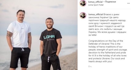 "Поздравляем с днем защитника Украины! Это праздник героических традиций нашего народа, силы духа и мужества, преданности своему Отечеству и гордость за него! Это праздник всех, кто любит и защищает Украину. Мы всей душей и сердцем за тебя!" - говорится в сообщении на общей страничке боксеров в instagram.