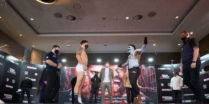 Накануне боксеры взвесились и оказалось, что британец на 17 кг тяжелее украинца.