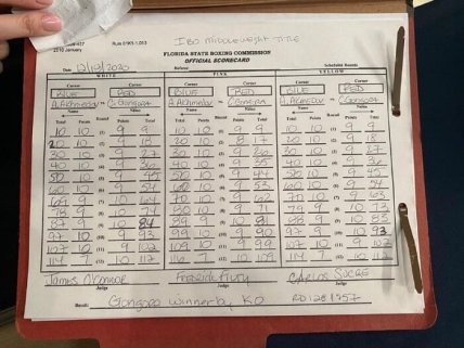Али Ахмедов нокаутом проиграл Карлосу Гонгоре, выигрывая поединок на судейских картчоках.