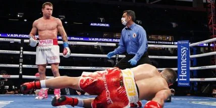 Боксер-дебютант брутально нокаутировал соперника (видео)Чемпион WBA, WBC во втором среднем весе 30-летний Альварес проводил обязательную защиту титула по линии Совета в поединке с турецким боксером Авни Йылдырымом. Мексиканец с первых секунд взял инициативу в схватке и принялся избивать андердога. В третьем раунде Сауль мощнейшей двойкой сквозь блок отравил соперника в нокдаун. 29-летний Авни поднялся однако сумел провести лишь остаток раунда. После 3-й трехминутки угол турка сдался.