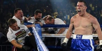 На вечере бокса в Вуллонгонге (Австралия) состоялся занимательный бой между известным супертяжем Лукасом Брауном и звездой регби Полом Галленом.