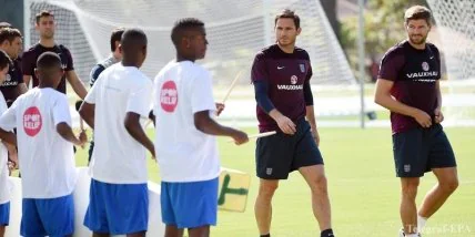 Капитан сборной был вынужден прервать занятие из-за небольшой травмы паха. Остальное время Джеррард занимался по индивидуальной программе.