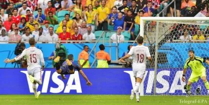 Через некоторое время Нидерланды могли удвоить преимущество: ван Перси, находясь в минимально офсайде после паса Роббена, мощно пробил в перекладину. Боковой арбитр флажок не поднял...