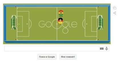 На этот раз, вечером 21-го июня, Google поставил заставку, посвященную матчу Германия - Гана. Можно увидеть нули на футбольном поле. И действительно, после первого тайма счет именно 0:0.