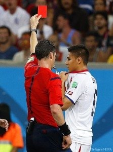 Уже на старте второго тайма Коста-Рика вышла вперед: Кэмпбелл отдал на Руиса, а тот бильярдным по точности ударом застал врасплох кипера греков. Через несколько минут арбитр не заметил игру рукой в своей штрафной в исполнении Торосидиса. На 66-й минуте Дуарте получил красную карточку и оставил Коста-Рику в меньшинстве.