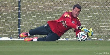 Жулио Сезар 45 минут отрабатывал отражение пенальти. О специфике последней тренировки перед матчем с Колумбией в 1/4 финала чемпионата мира вратарь сборной Бразилии рассказал журналистам.