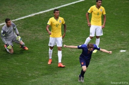 Сборная Нидерландов уже на старте поединка неожиданно вышла вперед. Роббен на скорости врывался в штрафную Сезара, где его рукой зацепил Тиаго Силва. Арбитр указал на 11-метровый. Ван Перси четко исполнил пенальти, поразив верхний ворот Бразилии.