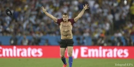Это уже третий случай, когда болельщик выбежал на поле на чемпионате мира — 2014. Ранее подобное случалось в матчах Бельгия – США и Германия — Гана.