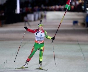 Дарья Домрачева выигрывает спринт в Оберхофе.