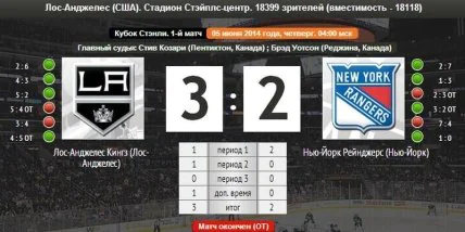 "Лос-Анджелес Кингс" - "Нью-Йорк Рейнджерс" 3:2 (в первом овертайме) (1:2, 1:0, 0:0, 1:0)