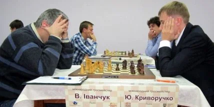 Ключевая партия тура – между рейтинг-фаворитом Иванчуком и действующим чемпионом Украины Криворучко – стала единственной мировой. Соперники играли рассчетливо, без эффектных ударов и лишнего риска, однако напряжение ощущалась с первых до последних ходов. Более титулованный и опытный Иванчук сначала захватил инициативу, однако его молодой, но изобретательный соперник умело защищался – отдал пешку и перевел партию в простой эндшпиль, где имел большие шансы на ничью. Вскоре позиция окончательно выровнялась, и гроссмейстеры пожали руки.