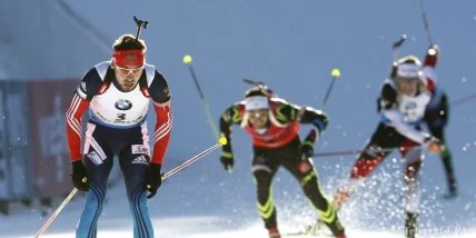 За несколько сотен метров до финиша масс-старта в Поклюке на победу претендовали трое: Антон Шипулин и французы Жан-Гийом Беатрикс с Мартеном Фуркадом.
