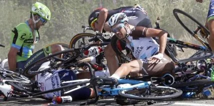 В результате коллективного падения многие спортсмены получили многочисленные травмы, передает ТСН со ссылкой на Reuters. Одновременно упали около 20 велосипедистов, в том числе швейцарский велогонщик Фабиан Канчеллара, которому пришлось сойти с дистанции, хотя в общем зачете на тот момент он был лидером и ехал в желтой майке.