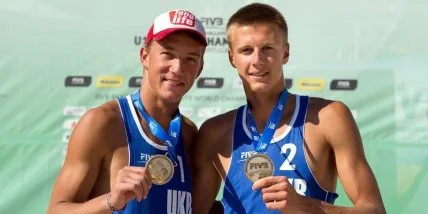 Украинская мужская команда по пляжному волейболу в составе Олега Плотницкого и Ильи Ковалева стала бронзовым призером на этапе взрослого чемпионата Европы в Швейцарии - соревнованиях Masters, сообщает УНН со ссылкой на пресс-службу ФВУ.