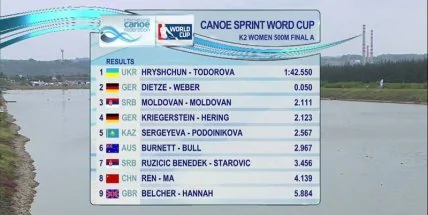 Украинки Анастасия Тодорова и Инна Грищун победили на этапе Кубка мира по гребле на байдарках и каноэ.