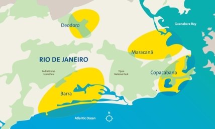 Организаторы Олимпиады в Рио-де-Жанейро разбили места расположения спортивных объектов на четыре зоны — Маракана, Копакабана, Барра и Деодоро.