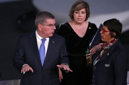 1:20 Глава МОК Томас Бах с организаторами проговаривает последние моменты.