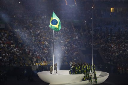 02:06 Звучит гимн Бразилии - хозяйки Олимпиады.