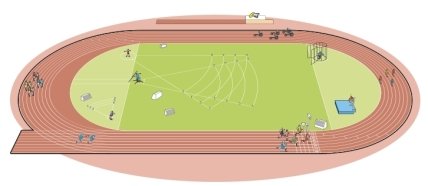 1. Men's: 100m, 200m, 400m, 800m, 1500m, 5000m, 4x100m relay, 4x400m relay, High jump, Long jump, Shot put, Club throw, Discus throw, Javelin throw, Marathon