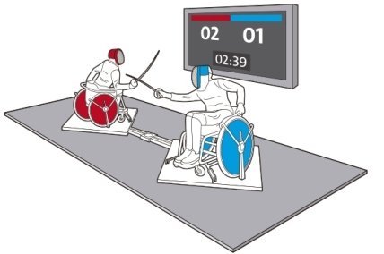 В данном виде спорта состязания проходят с помощью электрооборудования. При этом спортсмены сидят в колясках, которые закреплены таким образом, чтобы соперники находились друг от друга на вытянутой руке с оружием. В качестве оружия может выступать шпага, сабля или рапира. В судействе паралимпийское фехтование от обычного ничем не отличается. Каждое попадание в соперника регистрируется электрофиксатором. При нанесении кола сопернику засчитывается очко. У женщин фехтование осуществляется на рапирах и шпагах, а у мужчин на рапирах, саблях и шпагах.