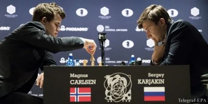 Российский гроссмейстер Сергей Карякин сыграет чёрными фигурами с действующим чемпионом мира норвежцем Магнусом Карлсеном.