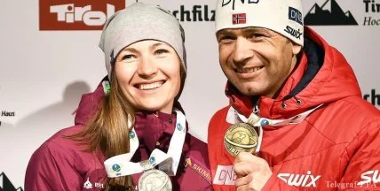 Бьорндален и Домрачева первая с 2004 года замужняя пара, выигравшая медали ЧМ в один день
