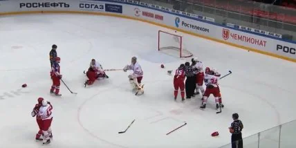 Во время матча Йокерита и ЦСКА случился забавный эпизод с массовой дракой.